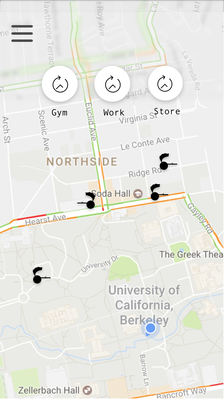 We had both a rider and a driver app, mimicking the Uber and Lyft model. Here are screenshots of the rider app.
