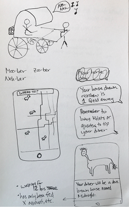 We ultimately went with the extreme personalization of the rickshaw with car brand logos, theme songs, driver attire, and facial greeting because the animal direction we feared would embarrass the driver. Throughout this project we were trying to be very cognizant that both rickshaw and Uber drivers make their livelihood providing these services.